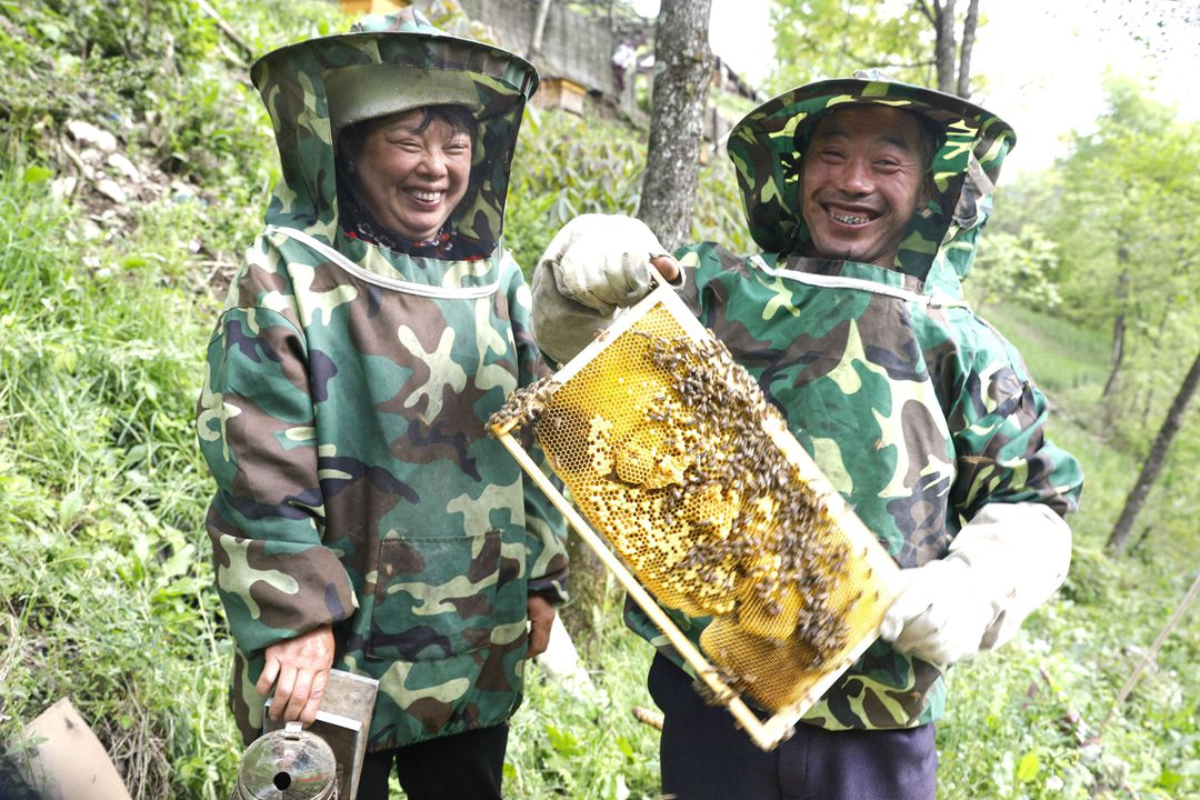 “今年又是个丰收年。”董存堂边采蜜边算丰收账:80多箱蜜蜂保底能挣6万元。更令人高兴的是,他的“甜蜜经”带动邻里乡亲共同发展养蜂产业,周边十多户村民合作成立养蜂合作社,大家齐心协力给蜂箱找“风水宝地”、定采蜜时间表,连蜂箱摆放角度都作了统一要求。300多箱蜜蜂组成“采蜜军团”,实行“基地+农户”的标准化生产,进一步提升蜂蜜品质。