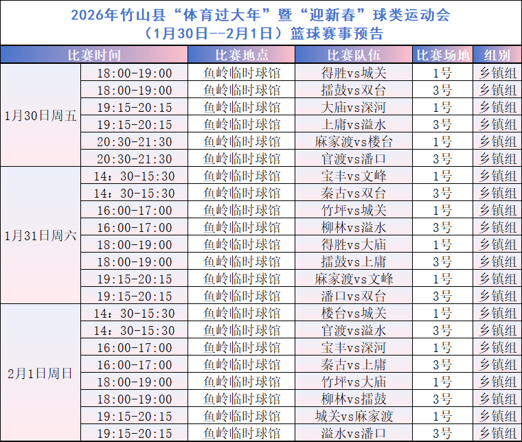 谁是竹山“灌篮高手”?答案就在这场村BA里!1月23日我县“体育过大年”暨“迎新春”球类运动会村BA篮球赛在鱼岭临时球馆正式开赛比赛当晚得胜、竹坪、潘口、擂鼓、大庙、宝丰、双台、官渡的8支乡镇代表队进