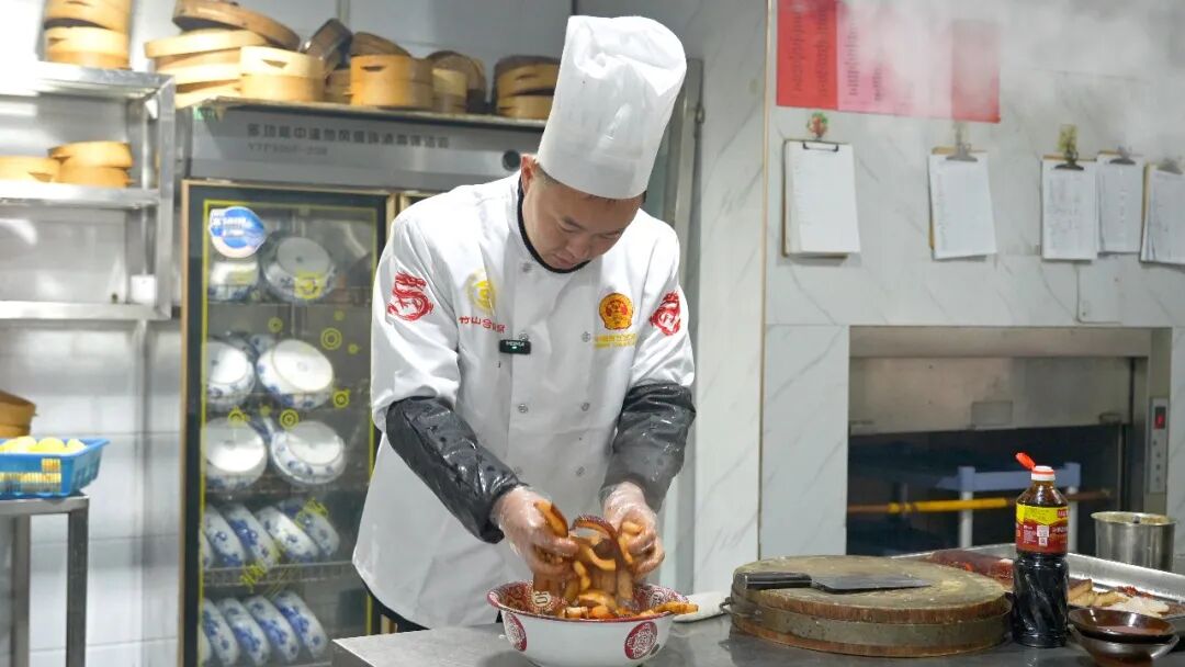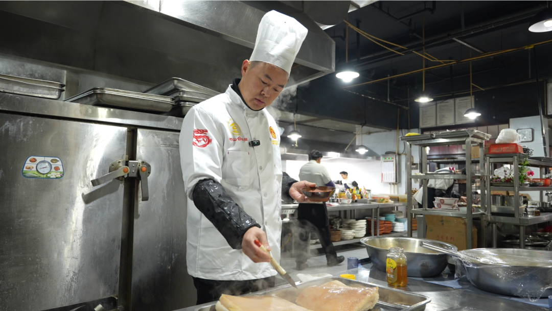 为扩大竹山特色品牌的知名度和影响力,县融媒体中心特开设“好品竹山”专栏,通过品牌推介、新品发布、产品体验与分享、特色产品代言带货等形式,了解竹山产品,探寻竹山好物,发现竹山之美。<svg viewbox="0 0 1 1" style="float:left;line-height:0;width:0;vertical-align:top;" role="img" aria-label="插图"></svg><svg viewbox="0 0 1 1" style="float:left;line-height:0;width:0;vertical-align:top;" role="img" aria-label="插图"></svg><svg viewbox="0 0 1 1" style="float:left;line-height:0;width:0;vertical-align:top;" role="img" aria-label="插图"></svg><svg viewbox="0 0 1 1" style="float:left;line-height:0;width:0;vertical-align:top;" role="img" aria-label="插图"></svg><svg viewbox="0 0 1 1" style="float:left;line-height:0;width:0;vertical-align:top;" role="img" aria-label="插图"></svg><svg viewbox="0 0 1 1" style="float:left;line-height:0;width:0;vertical-align:top;" role="img" aria-label="插图"></svg><svg viewbox="0 0 1 1" style="float:left;line-height:0;width:0;vertical-align:top;" role="img" aria-label="插图"></svg>好品竹山,品牌推荐。在竹山人的宴席上有一位当之无愧的“主角”,就是竹山条子肉。它不仅是市级非遗“竹山合碗席”的头碗招牌,更是一份流传在蒸笼热气里的乡情与匠艺。一碗完美的条子肉,究竟是如何诞生的?今天,我们一起探寻这道非遗美味背后的故事。一碗条子肉的灵魂,始于最初的选择。看似简单的猪肉,在行家眼里,有着严苛的标准。“这个肉选自我们本地的土猪五花三层。为什么选这个肉呢?因为选太肥吃了太腻,选太瘦吃了太柴,所以说选这种肥瘦相间的五花三层。”条子肉制作师傅王超介绍说。选好了肉,匠心的旅程便从第一缕烟火气开始。王师傅说,煮肉是奠定风味的基石。“接下来我们进入煮肉环节。煮肉要选一些香料:辣子壳少不了,八角茴一两个,肉桂一两个,再放点姜去腥味,放点葱。这个煮肉一定要冷水下锅,下一步我们就把香料倒进来。等水烧开之后,要把上边的血沫打起来,然后盖上锅盖煮个40分钟就可以了。”王超一边介绍,一边利落地将调料放入碗中。“煮了40分钟左右,用筷子轻轻一扎能扎透就行了。下一步就给肉上色了。”王超说。上色,是为条子肉披上红亮“战袍”的关键一步。传统的炒糖色,家庭版的酱油,如今有了更便捷的选择。“以前上色有几种方法,第一种就是传统的炒糖色,后来有家庭版用酱油上色。现在我们弄得比较简单,用蜂糖来上色,也简单些、也快些。先用牙签把肉皮均匀地扎上小孔,这是为了颜色通透。上糖色一定要抹均匀,炸出来才红亮。”王超说。煮好并抹匀蜂蜜的肉块,皮朝下滑入油锅。瞬间,热浪翻腾,肉皮在高温中迅速收缩,绽放出金黄酥脆、布满均匀气泡的“虎皮”。调味,是赋予条子肉风味与品相的仪式。泡软的肉块被改刀成约12公分的长片,寓意着完整圆满。“首先我们要把这个肉改下刀,一般12公分就可以了。调味一般情况下,放点胡椒粉、酱油就可以了。装碗的时候肉皮一定要朝下,一碗装十片,寓意十全十美。”王超说。定碗成型,是塑造风味与品相的关键一步。切好并调味的肉片被整齐地码入碗中,肉皮一律朝下,紧紧相依。接着,铺上本地的特色干竹笋。在竹山,家常制作时也常铺上干豆角、梅干菜或豆酱等自家晒制的干菜。这些配菜既能吸收丰腴的肉汁,增添独特风味,又化解油腻,是味道层次中不可或缺的一笔。“蒸这个条子肉是有讲究的,大火上气,文火慢蒸四个小时,这样蒸出来的条子肉才能肥而不腻。”王超说。在蒸汽氤氲的漫长等待中,时光将一切融合升华。这碗肉不仅关乎味道,更承载着厚重的文化。竹山“合碗席”源于邻里互助的“和合”文化,而条子肉,因其隆重大气、红火喜庆,永远是席面上压轴的“头碗菜”,象征着主人最热情的款待。四小时后,蒸笼揭开,云雾缭绕。将碗倒扣于盘中,咸鲜香甜复合的香气扑面而来。如今,这道承载着古庸遗风和非遗技艺的条子肉,早已走出农家宴席,成为竹山美食文化的一张金色名片。它在老字号餐馆的菜单上闪光,在非遗美食节的展台前飘香,吸引着八方食客前来寻味。 竹山条子肉为我们诠释了“好品”二字的全部意义。它是一道菜,更是一部活着的风物志,蒸腾着生活的热气,凝聚着人情的温暖,传承着这片土地上不变的生活智慧与待客之道。